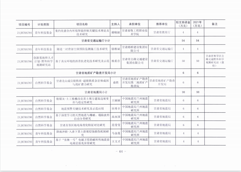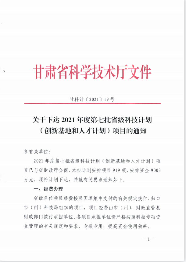 学院取得2021年科技厅青年科技基金计划项目1项