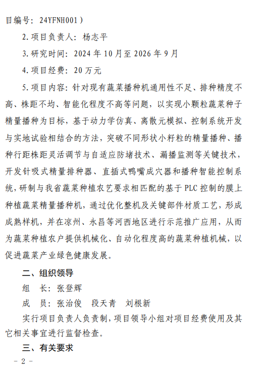 关于实施2024年度第三批省级科技计划(重点研发计划)项目的通知 来源: 发布时间:2024-12-25 16:20:00 浏览次数: 次 【字体:小 大】 终审:科技服务处 查看演示 分享到: 【打印正文】
