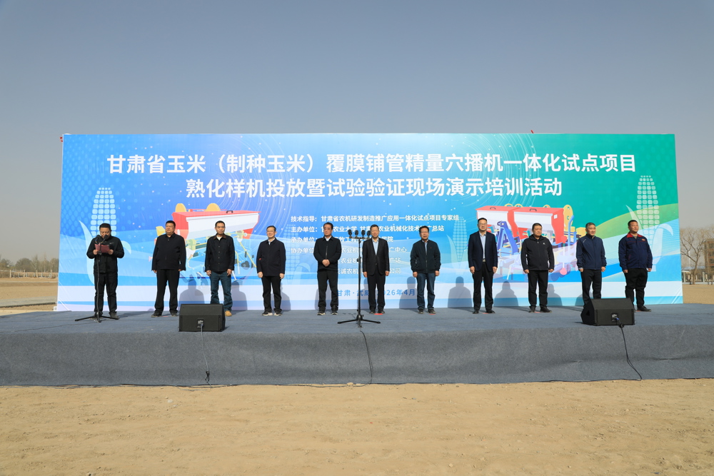4月3日,由甘肃畜牧工程职业技术学院等单位联合承办的“甘肃省玉米(制种玉米)覆膜铺管精量穴播机熟化定型与推广应用一体化试点项目(2025-2027年)熟化样机投放暨试验验证现场演示培训活动”在武威市凉州区黄羊镇成功举行,活动聚焦春耕备耕关键农时,旨在加速农机创新成果转化,标志着我省针对制种玉米生产关键环节的先进农机装备正式步入大规模田间验证与推广应用新阶段。