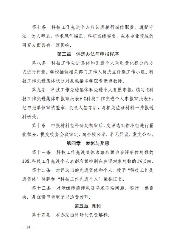 学院科技先进集体和先进个人评选暂行办法