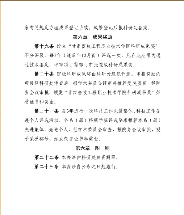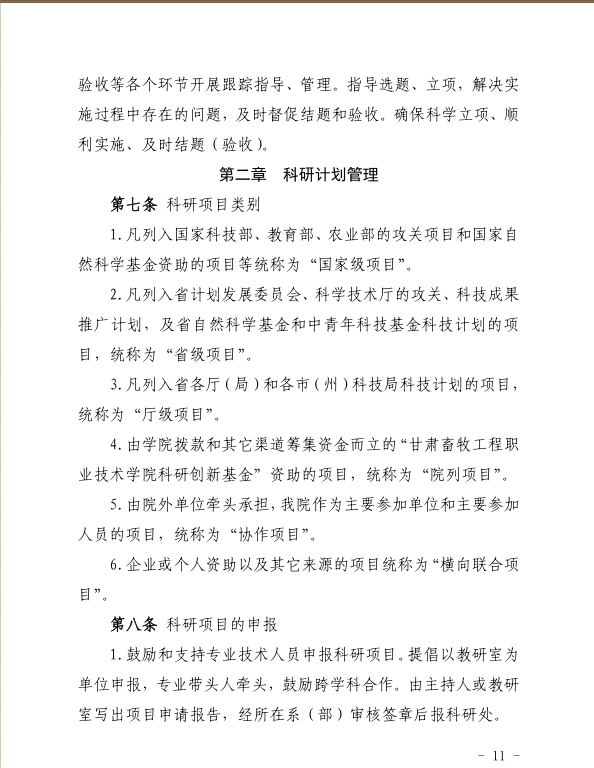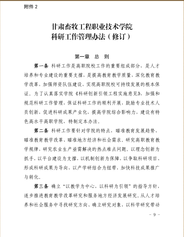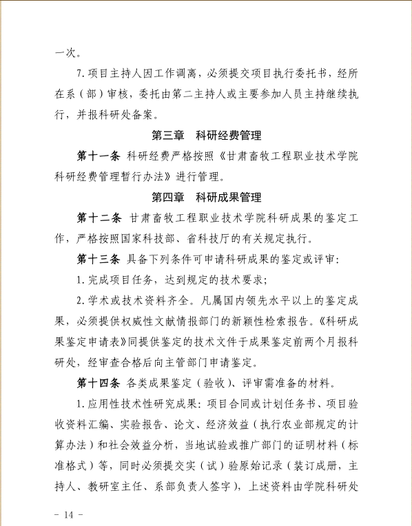 甘肃畜牧工程职业技术学院科研工作管理办法(修订)